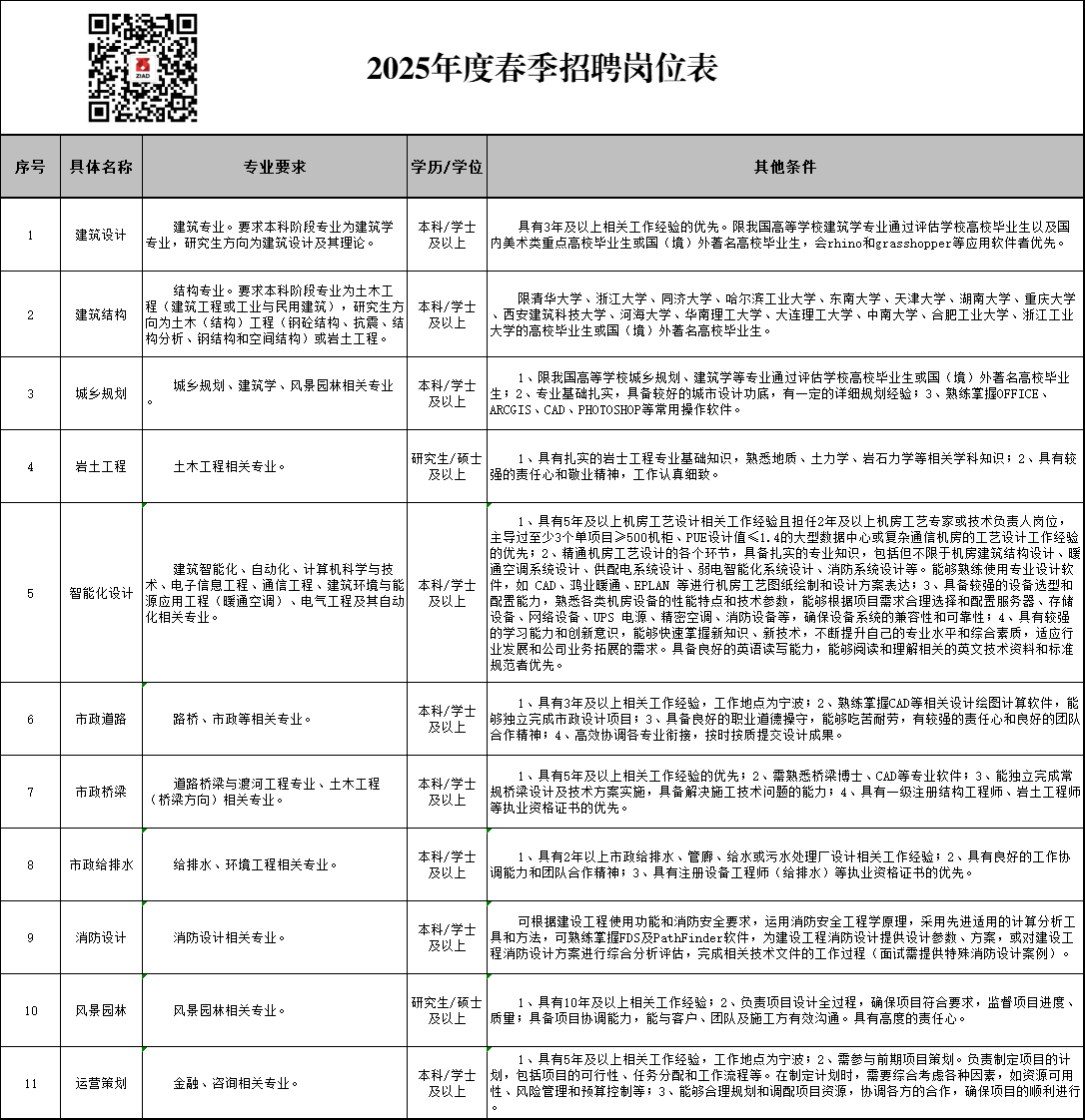 浙江省建筑設(shè)計(jì)研究院有限公司2025年度春季招聘公告